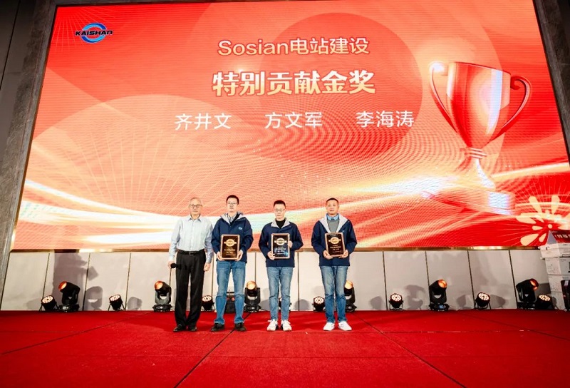 團拜會上,控股集團公司頒發(fā)了2024年度特別貢獻獎,表彰在過去一年為公司轉型升級和持續(xù)發(fā)展做出突出貢獻的團隊成員。SMGP電廠建設團隊、Sosian電站建設團隊、841/844大型無油螺桿主機工藝攻關團隊榮獲年度特別貢獻獎。總經(jīng)理湯炎博士向獲獎團隊成員頒發(fā)了金質和銀質獎牌。