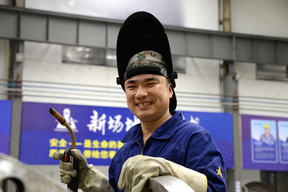 2002年,年僅18歲的姜梅進入恒堅壓力容器公司,被安排在工業機班組從事埋弧焊工作,這個工作的難度在于焊接角度怎么調整,電流電壓與焊接速度的匹配。當時帶他的師傅,是有著豐富經驗的焊接老技師汪金生。汪師傅對人要求嚴格,對焊接工藝要求很高,小姜每次操作稍有不當,都會被汪師傅認真指出。汪師傅經常教導他:要成為一名優秀的埋弧焊接師傅不僅要吃得起苦,受得起累,還要在日常工作中善于觀察,善于尋找新的方法。